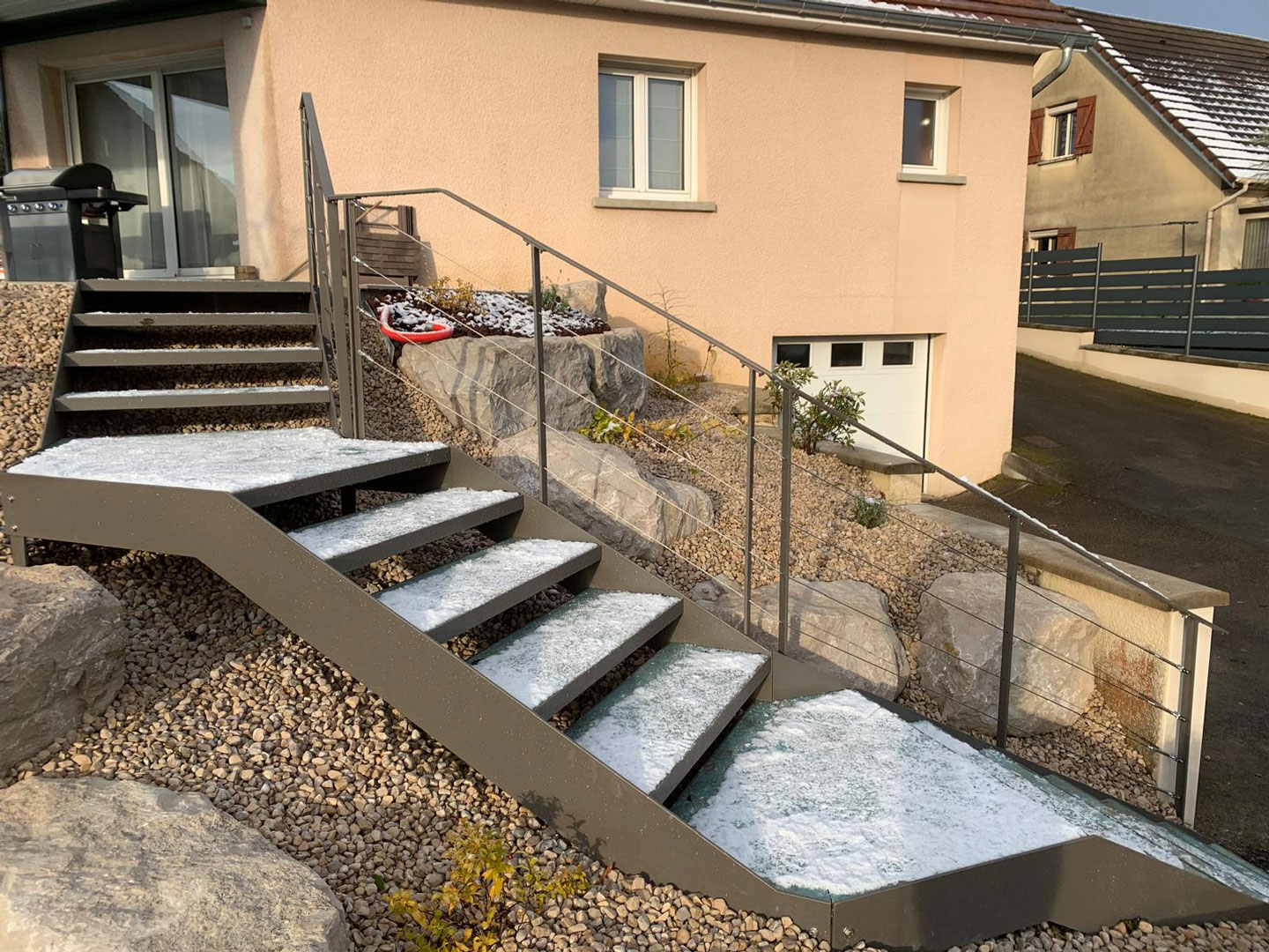 Chez Ekinox Design, chaque escalier sur-mesure est une œuvre unique, fruit d’un mariage entre design et ergonomie. Nous concevons et fabriquons des escaliers qui s’intègreront harmonieusement dans votre intérieur ou extérieur, alliant esthétisme des lignes, choix des matériaux et respect des contraintes techniques. De l’esquisse à l’installation, chaque étape est maîtrisée dans nos ateliers à Lons-le-Saunier (39).